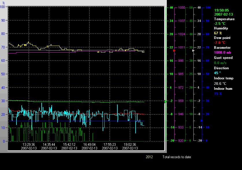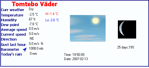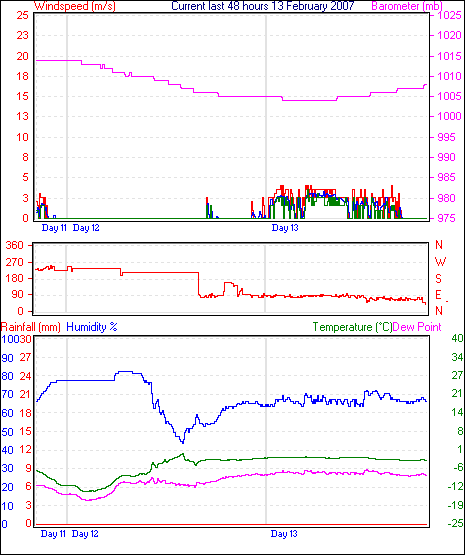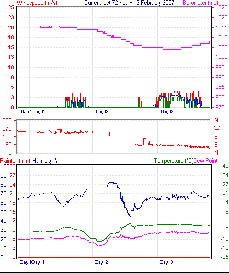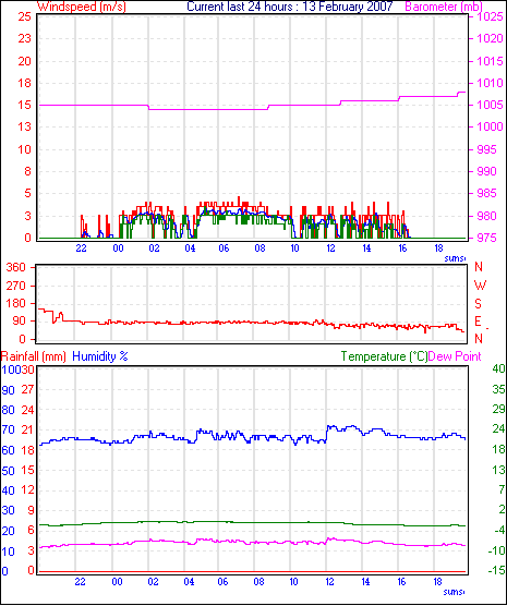 | Yesterdays rainfall | 0.0 mm | DewPoint | 11.1°C (Wet Bulb :15.2°C ) |