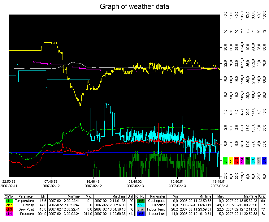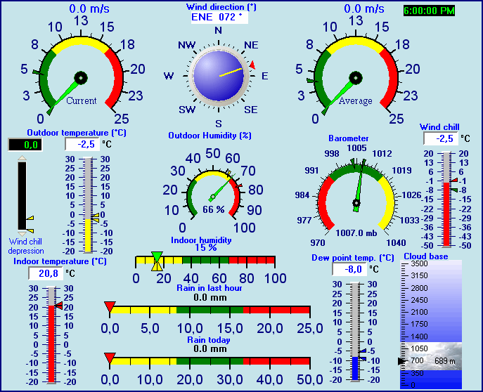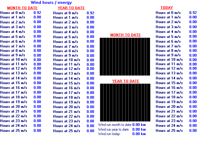 | Maximum rain per minute (last hour) | 0.0 mm/min | Maximum rain per hour (last 6 hours) | 0.0 mm/hour |