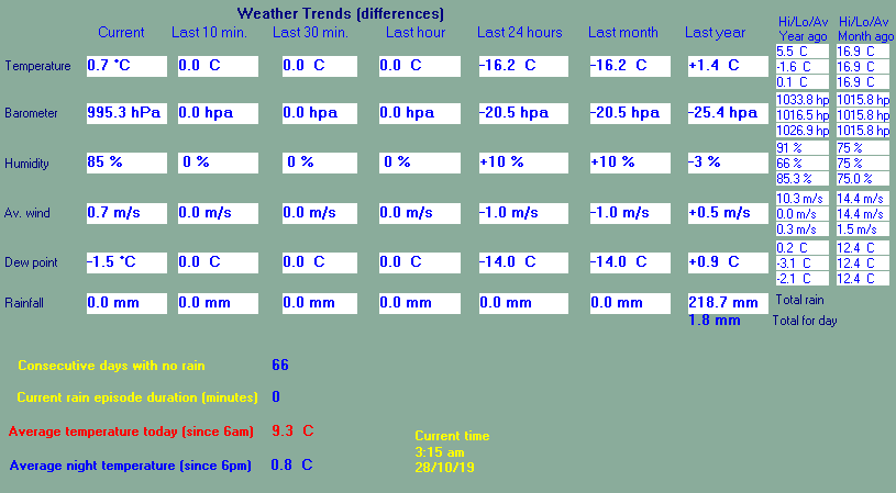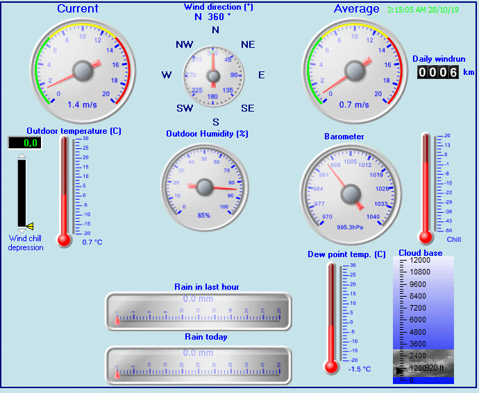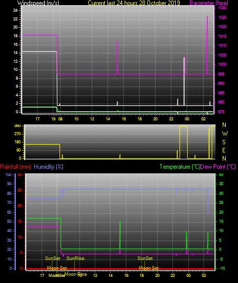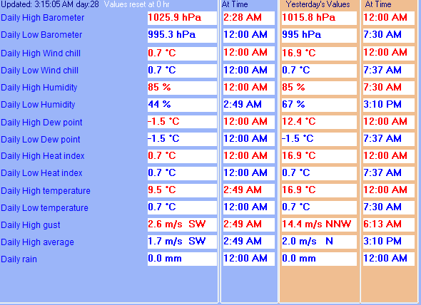 | Yesterdays rainfall | 0.0 mm | DewPoint | 11.1°C (Wet Bulb :15.2°C ) |