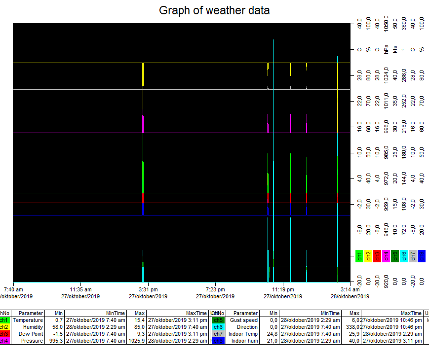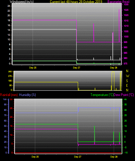 | Maximum rain per minute (last hour) | 0.0 mm/min | Maximum rain per hour (last 6 hours) | 0.0 mm/hour |