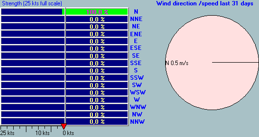 Maximum windspeed = 25.7 m/s from 045°( NE) on day 15 at time 00:02